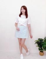 秋季好感穿搭:不对称裤裙+短版T