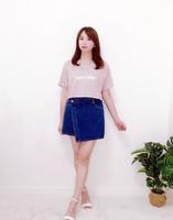 天气仍旧炎热,就穿薄棉T来消暑~短版T不但通风透气,还能让裤裙的不对称腰头设计露出来,强调斜切线条,增添造型感。粉色棉T很可爱,搭配丹宁裤裙超Match;套上一字凉鞋,在休闲风中注入Lady感,让整体多一些甜美,就是人见人爱穿搭的小小巧思^^