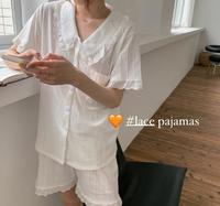 谁还没有个少女心呢,蕾丝搭边的衬衫以及柔和的颜色,睡衣材质还是冰丝款,就算是大热天也不怕,在空调的室内更是让你穿得舒服。就算在家穿着在家办公也完全没问题哦~!