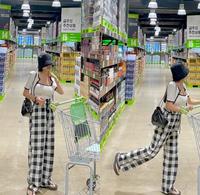 格纹宽裤看似基本,但却很好搭,无论是短T或背心都可以,几乎拖地的长度,也能让腿看起来更长,凉鞋、拖鞋,运动鞋也都不会有违和感,更何况宽裤还能修饰腿型呢!