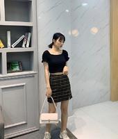 一字领加上短版的设计,锁骨和小蛮腰都有助于小露性感~