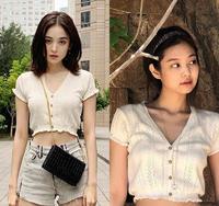每次Jennie的机场穿搭一曝光,大伙儿就会开始热烈讨论她身上的单品,包括这件短版上衣!这家淘宝店铺的售价简直就是佛心家来着,色系上除了Jennie的湖水蓝,还有橘色、粉色和牛油果绿供选择!