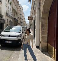 再来是这款Jennie出国旅游时候穿的镂空上衣。简单搭配一件牛仔裤就可以出门啦!