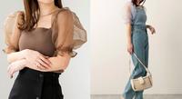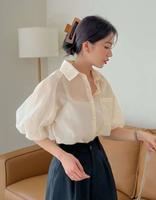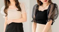 3/ Heather方领透肤欧根纱泡泡袖上衣