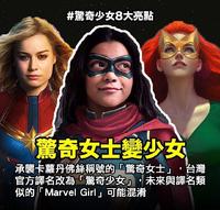 首支预告片公布的同时,大家也同时知道了「惊奇女士」改名为「惊奇少女」的讯息。「惊奇女士」是由几位超级英雄先后承担的称号,在漫画中,卡萝丹佛斯(CarolDanvers)2012年卸下了这个名号而成为「惊奇队长」(CaptainMarvel),之后「惊奇女士」的名号就无人继承,一直到卡玛拉汗(KamalaKhan)出现。然而从首支预告片看来,的确称为「惊奇少女」更符合主角的年纪,且仅仅是tw官方译名的更改而已。不过漫威宇宙中另有「MarvelGirl」的称号,届时该如何翻译?且让官方自己去伤脑筋~