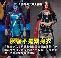 不论是卡玛拉最崇拜的超级英雄「惊奇队长」卡萝丹佛斯,或是其他不论男女的超级英雄,几乎都是穿着全身紧身衣,然而惊奇少女却不是。惊奇少女的服装维持原漫画设定,设计灵感来自印度旁遮普地区的年轻女性便服「莎尔瓦卡米兹」:在宽松的长裤(Salwar莎尔瓦)外以长上衣(Kameez卡米兹)作为裙摆,通常还会搭配一条披巾(Dupatta杜帕塔),不仅加入了文化的元素,也避免让少女穿着过於暴露;在伊斯兰文化中,不论男女都不适合穿得太强调身体曲线,也尽量不要裸露太多。另外还有一点不同,就是多数的超级英雄都是穿靴子,但影集中的惊奇少女却穿着帆布鞋,洋溢着卡玛拉特有的少女气息!