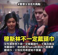 在首支预告片中,日常生活总是穿梭於学校与清真寺之间的卡玛拉,在礼拜时的确有戴头巾,然而日常生活中以及扮演「惊奇少女」的时候却没有。在伊斯兰世界中,并非所有女性都需要戴头巾,随着教派与地域的不同,对头巾所应该覆盖的范围也有不同的规定,以卡玛拉的文化母国巴基斯坦来说,多数的少女不需要戴头巾;而卡玛拉的闺蜜娜奇雅(Nakia)来自土耳其,就是一个不鼓励戴头巾的国家,娜奇雅的父母也希望她不要戴头巾,然而娜奇雅还是出於个人选择而戴头巾,却反而招致同学的误解与霸凌。将卡玛拉与娜奇雅并列比较,正好凸显出头巾在古兰经中的原意,不是强制的规定也无关性别的压迫;饰演娜奇雅的演员YasmeenFletcher也已经证实她将会按照漫画的设定,在戏中佩戴头巾。