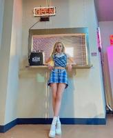 带着超洗脑旋律「DUMBDUMB」回归,其中副歌的酷炫手势更是引起一波Cover热潮!从MV到打歌舞台,共有2套格子套装,分别为蓝灰色与芥黄色,紧身套装完美展现SOMI的身体线条~