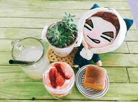 我觉得整间店其实布置的满乡村小店的,因为有很多小植栽跟手工蜡烛。朋友跟我介绍了这间店的菜单,我们点了烤土司、草莓优格及米露。分量虽然不算大,但东西都满好吃的。整体装潢也不会让人觉得很商业或是很凌乱,有种温馨的感觉。