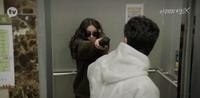 面对一边帮自己洗裤子又觉得对不起自己的悲情妈妈,和各种酸言酸语的爸爸,挥吴跑到澡堂洗澡,想起隔壁的疯女人,在热汤中咬牙切齿,接到父母准备搭车回家的电话,便急忙离开澡堂。出门倒垃圾做回收的旻景,遇到了淋湿的流浪小狗,心生怜悯的旻景追着流浪狗到了地下停车场,却遇到了准备前来开车送父母回家的挥吴,心生恐惧旻景转头看到监视器,便朝着监视器挥舞求救,甚至爬上挥吴的车上疯狂跳着叫着。
