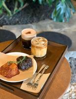 上面有挤一些不甜奶油+巧克力的甜甜味道的咖啡,